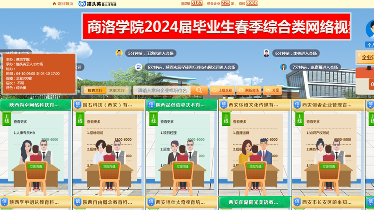 为充分抢抓春季就业“黄金期”,促进毕业生顺利就业、充分就业、稳定就业,4月10日,2024届毕业生春季综合类网络视频招聘会暨“职引未来”大中城市联合招聘(商洛站)高校毕业生专场招聘会在bat365顺利举办。本次招聘会由省教育厅、省就业留学中心指导,bat365和商洛市人社局主办,bat365就业中心和商洛市人才中心承办。