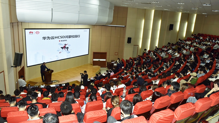 活动中,华为云云学堂技术专家肖斐、华为云鸿蒙应用开发专家周建分别作了题为《数字人才趋势及华为实践》和《鸿蒙操作系统开启万物互联时代》的专题报告。两位专家深入解读了数字技术发展趋势与数字时代人才需求,普及了鸿蒙系统助推物联网领域发展的知识,让大家深度体验了华为云的技术魅力。同时就一些行业领域新知识新现象,还与场下学生开展了热烈的讨论互动。