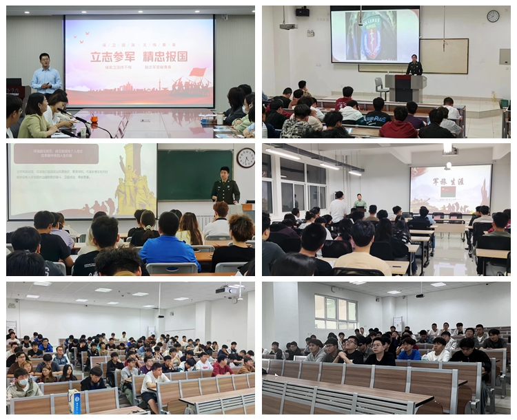会上,人民武装部教师张哲以《立志参军,精忠报国》为题,从入伍优待政策、参军入伍要求、应征入伍流程简介等三个方面就征兵工作有关政策进行了宣讲。他表示,参军入伍不仅有利于锻炼自己、磨练意志,也是自身未来发展规划的重要选择之一,他鼓励同学们积极携笔从戎、参军入伍,为中国梦、强军梦贡献自己的青春力量。