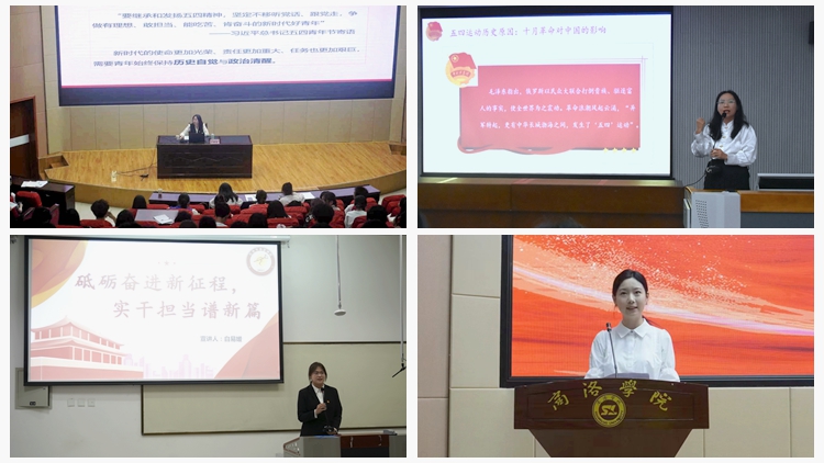 在团员青年主题宣讲环节,校团委红色号角宣讲团成员白易媛、张雨欣、杨婷、特畅以《砥砺奋进新征程实干担当谱新篇》《学思践悟新思想笃行实干向未来》《生而逢盛世青年当有为》《让学雷锋在新时代大学生中蔚然成风》为题,着眼于优秀校友、身边典型,号召广大青年坚定理想信念,听党话、跟党走,争做有理想、能吃苦、敢担当、肯奋斗的新时代好青年。