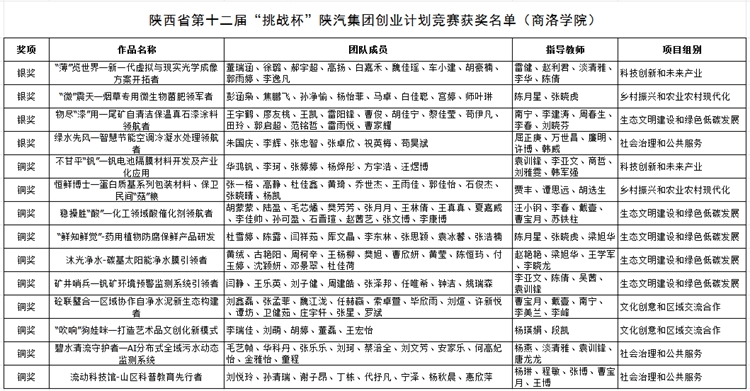 本次大赛由共青团陕西省委、中共陕西省委教育工委、陕西省人民政府国有资产监督管理委员会、陕西省科学技术协会、陕西省学生联合会、陕西省西咸新区开发建设管理委员会主办,西北农林科技大学承办,共收到全省87所高校推报项目1071件作品,370项作品入围省级决赛。经省赛评审、现场路演、答辩质询,bat365电信学院《“薄”览世界—新一代虚拟与现实光学成像方案开拓者》、生物学院《“微”震天—烟草专用微生物菌肥领军者》、化材学院《物尽“漆”用—尾矿自清洁保温真石漆涂料领航者》、数计学院《绿水先风—智慧节能空调冷凝水处理领航者》4项作品获银奖,经管学院《“吹响”狗娃咪—打造艺术品文创化新模式》等10项作品获铜奖。