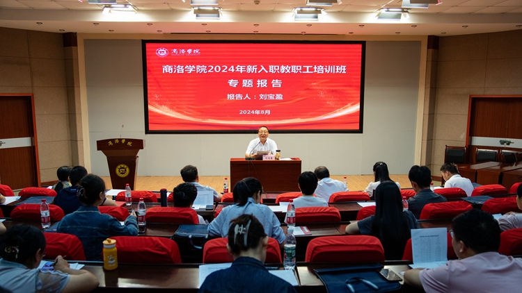 在专题报告中,刘宝盈向新入职教职工介绍了学校发展历程、基本情况及当前面临的形势和任务,并结合自身成长发展经历对新入职教职工提出四点要求:一是坚定理想信念,热爱教育事业。要深刻理解和认同教育事业,热爱讲台上的每一次授课,用心、用情、用自己的专业知识和人格魅力引领学生,培养具有创新精神和实践能力的人才。二是坚守初心使命,树立远大理想。要树立在平凡中追求卓越的远大理想,把“为党育人、为国育才”刻在自己职业初心与事业使命的标尺上,担当作为,不断进步。三是尽快适应环境,完成角色转变。要有自觉增强立德树人、教书育人的荣誉感和责任感,做好学生成才成长的“引路人”。四是教学科研并重,追求卓越。合理利用身边资源,依托学校的教学科研平台,发掘商洛自然、文化资源,聚焦地方经济社会发展,在实践中提高自己的科研水平,以科研驱动教学,提高教学水平。