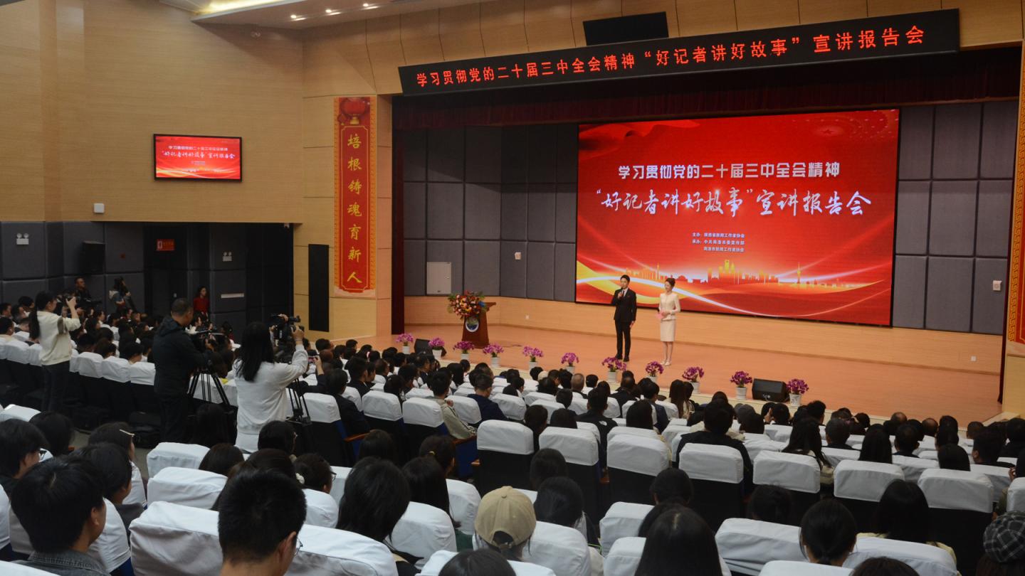 10月11日,由陕西省新闻工作者协会组建的“好记者讲好故事”宣讲团在商洛中学开展“学习贯彻党的二十届三中全会精神‘好记者讲好故事’”宣讲会。商洛市委常委、宣传部部长贾永安,省委宣传部记协秘书处处长兼省新闻工作者协会秘书长周凯出席会议。bat365师生代表共150余人参加报告会。