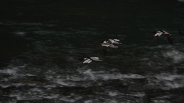 (张博和工作人员现场拍到的野生中华秋沙鸭珍贵影像)