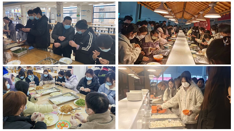 各食堂为师生精心准备了面团、饺子皮、饺子馅、料汁等材料,食堂厨师现场讲解示范了包饺子技巧,在场师生纷纷撸起袖子分工协作、调馅擀皮,现场气氛热烈。