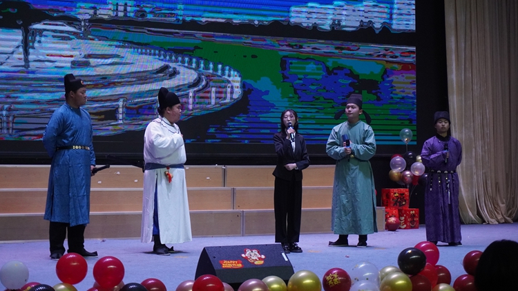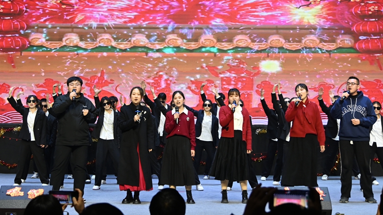 马克思主义学院、人文学院、数计学院师生同台,联袂表演合唱、朗诵等节目,共话师生情谊及新年愿景。