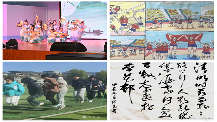 艺术学院组织师生以“三笔字”技能展示、跳绳比赛、漫画创作、舞蹈展演等形式欢庆元旦,在实践中引导学生成长成才。