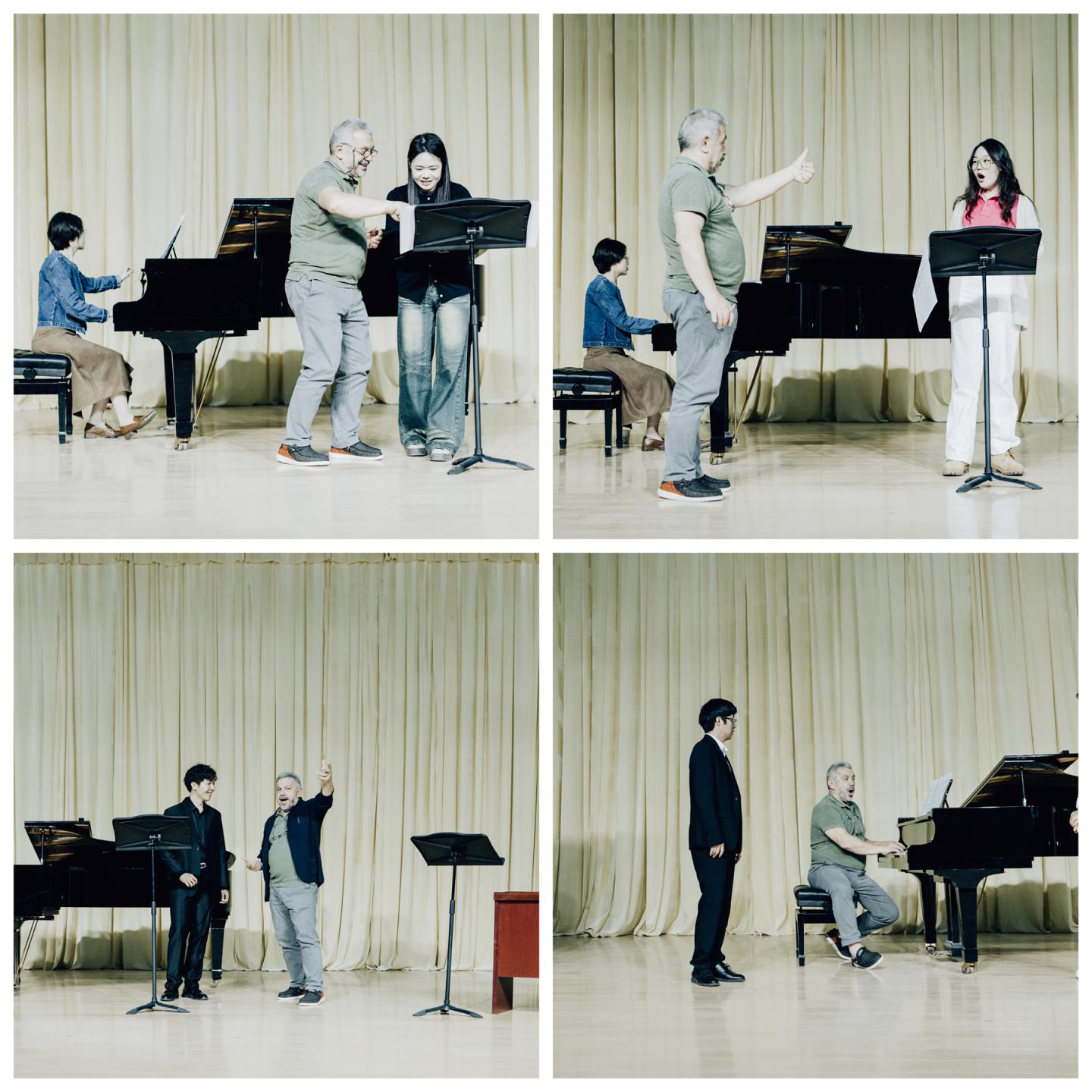 在为期三天半的公开课期间,斯皮内利教授从气息运用、发声舒展性、语言准确性、歌曲处理以及舞台表演等方面对艺术学院音乐学专业30余名学生进行一对一指导,音乐系全体师生现场观摩学习。