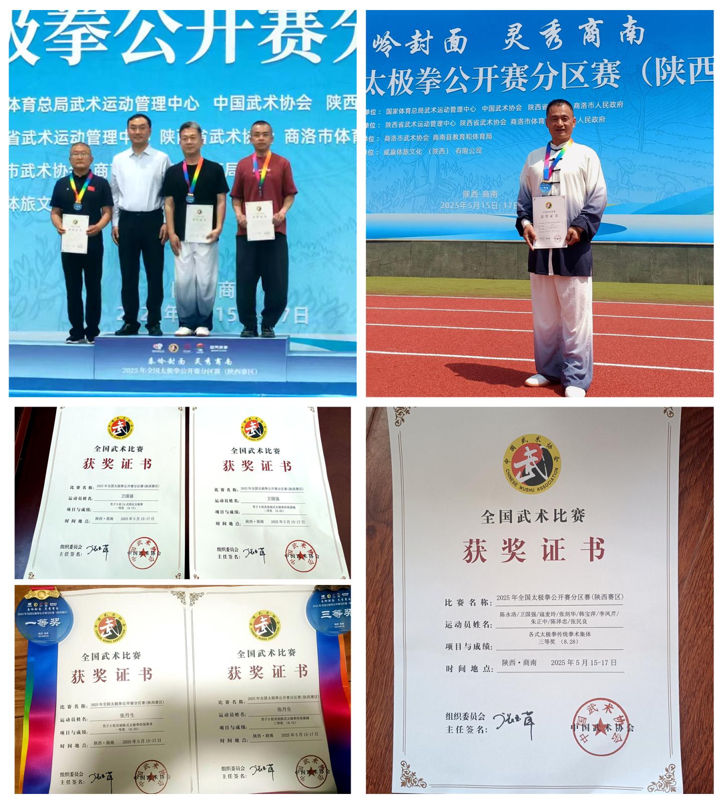 5月15日至17日,由国家体育总局武术运动管理中心、中国武术协会、陕西省体育局、商洛市人民政府主办,陕西省武术运动管理中心、陕西省武术协会、商洛市体育局、商南县人民政府承办的2025年全国太极拳公开赛分区赛(陕西赛区)在商南县体育馆举行。bat365教职工张丹生、卫国强参赛并获得个人项目一等奖2项、二等奖2项、三等奖1项,集体项目三等奖1项。