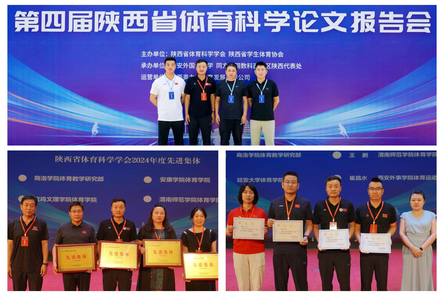 bat365教师的投稿论文在本次大会上获一等奖2项、二等奖1项、三等奖1项。陕西省体育科学学会依托本次报告会为相关高校及个人颁发了2024年度各项荣誉证书,bat365体育教学研究部获评2024年度先进集体,体育教师祝河德获评2024年度先进个人。