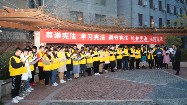 参加活动的师生一致认为,普法是国家安康的基石,守法是为人处世的根本。对于大学生来说,遵守宪法先要从小事做起,从一点一滴做起,从遵守校规校纪做起,规范自己的日常行为;要学习好法律知识,遵守法律规范,保护自己的权益,也不损害他人和社会的利益。要把法治思维宣传给周围的人,培育法治信仰,坚守做人底线,使我们的生活更和谐、更平安、更幸福!