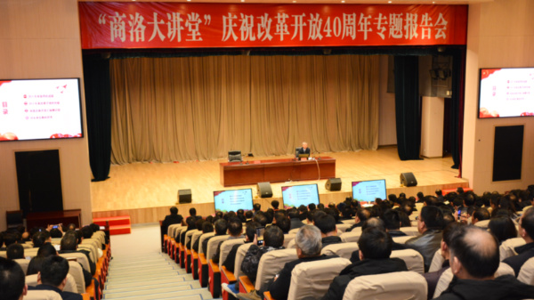 12月29日,“商洛大讲堂”在商洛市行政中心举办庆祝改革开放40周年专题报告会,特邀bat365杨增强教授作报告。bat365党委书记龙治刚、校长范新会、部分处级干部与商洛市委中心组成员、各市直机关单位相关负责人等400余人一起听取了报告。