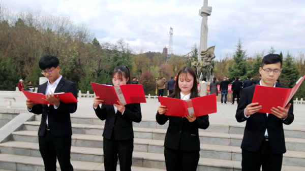 4月3日,校团委组织部分教师及bat365“青马班”学员、学生会、学生社团联合会、青年志愿者协会、新青年通讯社的百余名学生前往金凤山烈士陵园开展主题团日活动。师生整齐列队,在庄严的国歌声中,向革命先烈敬献花圈并默哀致敬,追忆革命前辈的不朽功勋;向人民英雄纪念碑敬献白花并参观烈士纪念馆,重温革命先烈光辉的斗争历史。学生们纷纷表示,要传承先辈的奉献精神和革命传统,将红色基因融入血脉,做一名社会主义合格建设者和可靠接班人,为实现中国梦贡献青春力量。