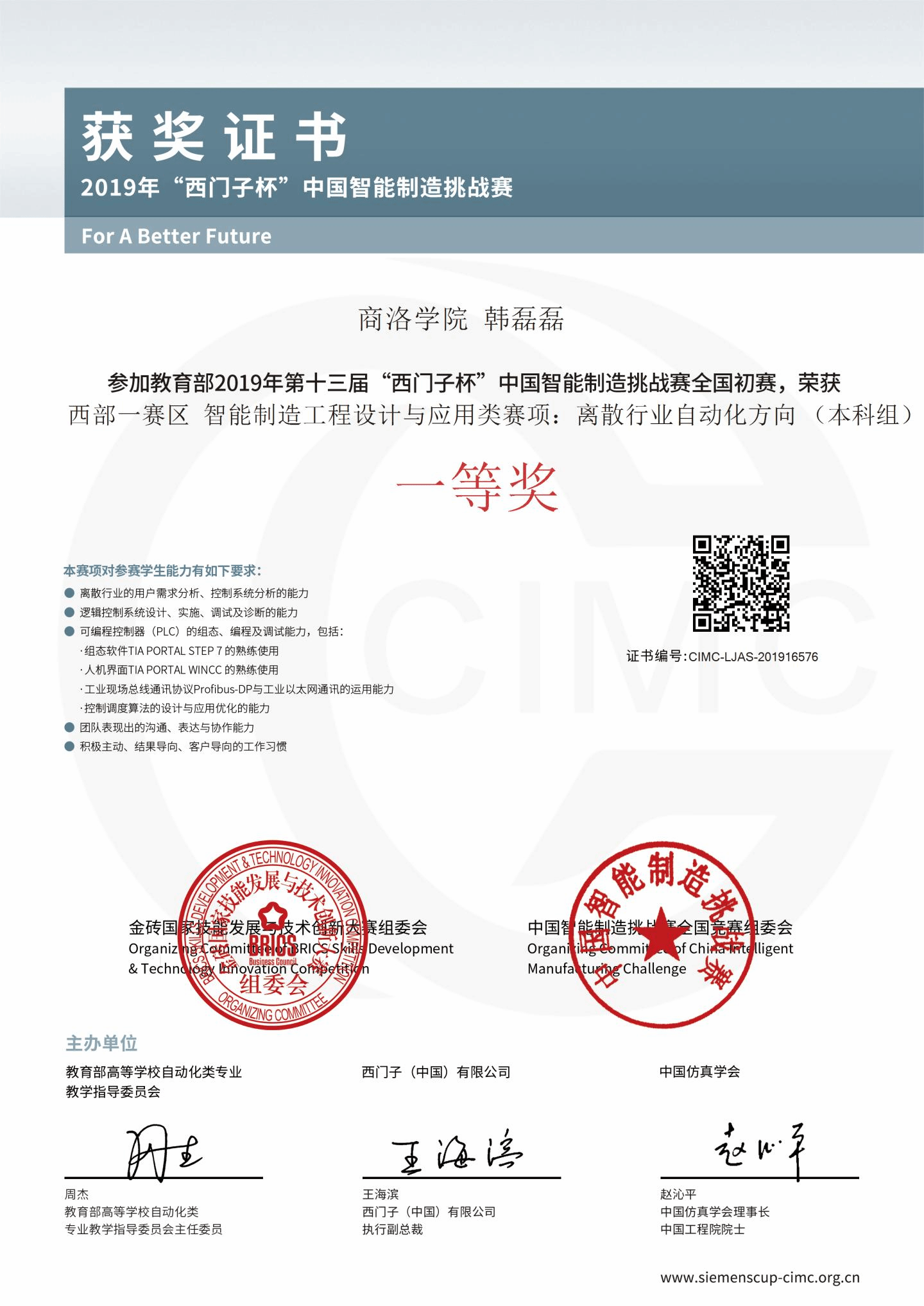 7月18日,由教育部与西门子(中国)有限公司共同举办的2019年第十三届“西门子杯”中国智能制造挑战赛西部赛在太原理工大学落下帷幕。bat365经过校级初赛、复赛,选拔两支离散行业自动化方向队伍参加西部赛区复赛。最终由青年教师刘俊、柯希彪指导的学生韩磊磊、朱东东、乔保岗团队脱颖而出,喜获第十三届“西门子杯”中国智能制造挑战赛西部赛区一等奖