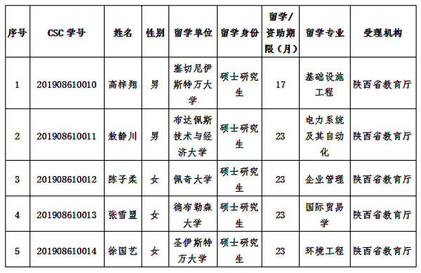 2019年度匈牙利互换奖学金录取名单(第一批)