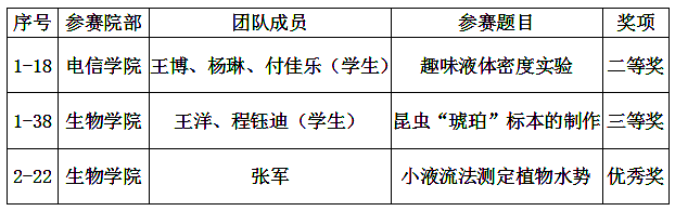 大赛由陕西省科技厅、陕西省教育厅、中科院西安分院共同举办,以“科技强国、科普惠民”为主题,选手们以物理、化学、生物领域中有趣的实验和常见的科学现象为切入点,将科学知识与多种艺术形式巧妙融合,在比赛中各展风采,既演绎了经典科学实验,又形象展示了最前沿的科技成果。本次大赛全省共有103个参赛队伍同台竞技,经过初赛、复赛两轮角逐,共评选出一等奖3组,二等奖7组,三等奖10组。bat365今年首次参赛,科技处积极组织安排,参赛选手精心备赛、稳定发挥,充分展现了bat365师生扎实的科学素养和良好的精神风貌。