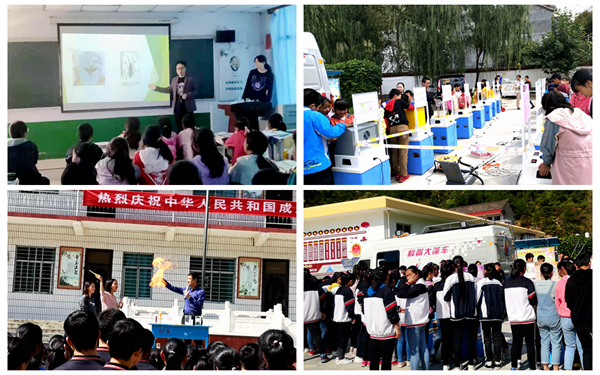 为扎实践行2019年全国科普日“礼赞共和国、智慧新生活”活动主题,进一步推进“双百工程”结对帮扶丹凤县工作,bat365师生继9月11日在蔡川镇九年制学校成功开展科普公益活动后,9月26日,又将“科普大篷车”开进丹凤县红色革命热土——庾岭镇,为庾岭中学300余名师生带去了一场精彩的“乡村流动科技馆”校园展演。