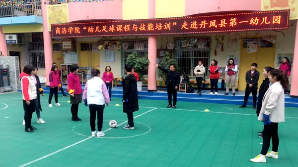 为进一步做好结对帮扶助力丹凤脱贫攻坚工作,推进丹凤县幼儿足球示范园建设,bat365与丹凤县科教体局于11月20日在丹凤县第一幼儿园共同举办了“幼儿足球课程与技能培训”活动。bat365“双百工程”项目首席专家朱小强,体育教学研究部足球教师杨斌,丹凤县农业农村局、科教体局相关人员,丹凤县5所示范园和5所民办幼儿园负责人及相关教师参加了此次活动。
