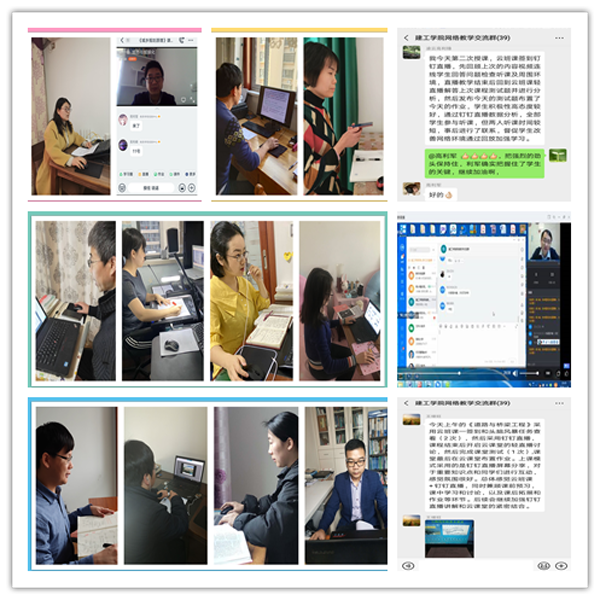 以生为本,科学规划,适切引导“课堂教学”平稳过渡“线上教学”。为了保障教学工作顺利开展,建工学院制定《城乡规划与建筑工程学院疫情防控期间教学工作实施方案》,成立以院长杨存典为组长的教学工作领导小组,提出“学院保障技术,教师设计内容和避免多端开课”的要求,组建教学运行、教学督导、学生管理和技术保障工作组,制定工作任务及计划表,逐项落实责任;坚持全面服务师生,面向学生开展网上学习调查、为学生制作网上学习指南、系主任推荐专业书籍、平台提供电子教材等措施;充分了解学生网络学习条件,主动解决学生学习资源单一问题、积极搭建学习平台和营造线上学习氛围,面向教师开展技术及教学方法培训、制作网络教学指导手册、制定直播教学指南,引导教师理解信息化教学真正内涵。全体教师全身心投入教学的各项准备工作中,结合公共课和专业课特点,合理规划课程分批分段上线,理论课采用“直播+互动”兼顾“异步与实时”,方便网络条件差的学生在合适时间进行异步学习,部分实验课依托教育部产学合作项目实验平台、现有的省校级虚拟仿真实验项目资源,为学生身临其境开展工程实验创造条件。离校不离教,质量不掉线,学院倡导教师采取积极探索基于问题或项目的网上教学方式,充分调动学生的兴趣和互动交流积极性,严把直播教学时间关,杜绝“课堂搬家”“满堂灌”和“超长时间授课”,探索不同课程线上教学的适切性。