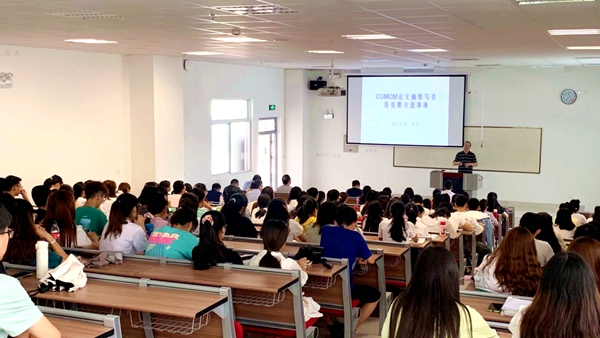 张博副教授现任全国大学生数学建模竞赛陕西赛区组委会副秘书长兼办公室主任,他以《数学建模论文摘要写作和竞赛注意事项》为题作数学建模专题报告。bat365参加2020年全国大学生数学建模竞赛的学生和指导教师聆听了张教授的精彩报告。报告借助建模摘要典型案例分析,详解了建模竞赛论文摘要的写作方法,介绍了竞赛期间建模论文的提交、相似度检测以及竞赛纪律等注意事项,鼓励师生坚定信心、积极备赛。