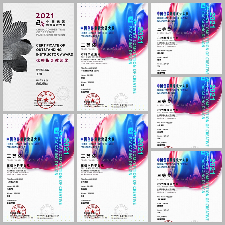 近日,由中国包装联合会举办的2021年中国包装创意设计大赛圆满结束,bat365师生踊跃参赛,共获得二等奖2项,三等奖11项,优秀奖14项,1名教师获得“优秀指导教师”奖。
