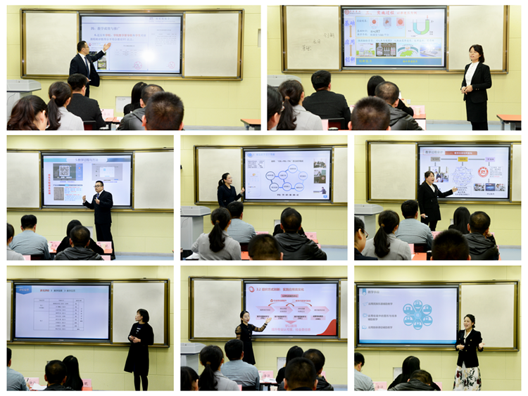 本届大赛经过院级初赛选拔,共选出正高组、副高组、中级及以下组8位教师进入校级决赛。决赛成绩由课堂教学实录视频、教学创新成果报告、教学设计创新汇报三部分按比例合成,得出竞赛最终成绩。校级决赛采取现场评审方式进行,参赛教师结合教学大纲与教学实践,分别进行了12分钟的教学设计创新汇报和8分钟的专家问答交流。