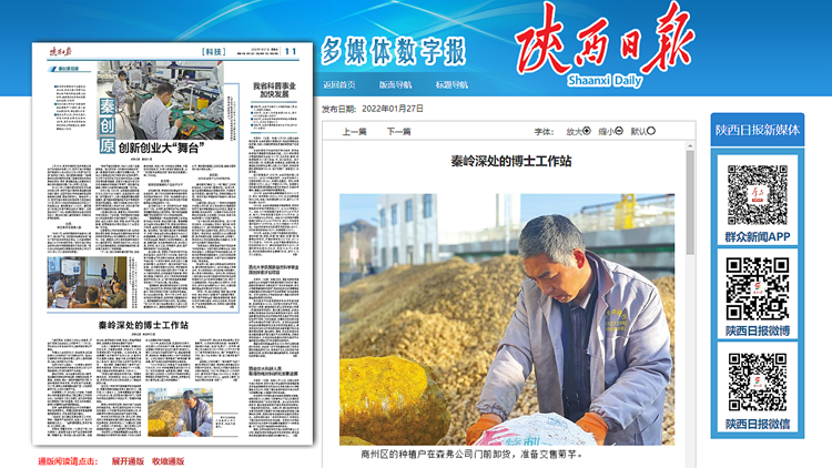 1月27日,《陕西日报》科技版以《秦岭深处的博士工作站》为题,专题报道了bat365与陕西森弗天然制品有限公司开展产学研合作,建立博士工作站,助力科技成果转化,服务产业升级,带动地方发展和乡村振兴的工作成果。