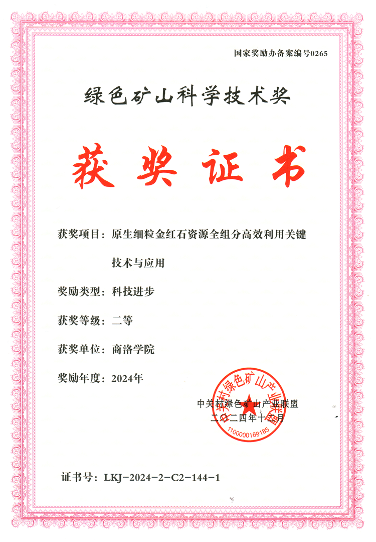 据悉,绿色矿山科学技术奖(国家奖励办备案编号0265)是国家奖励办于2015年正式批准,旨在对绿色矿产勘查、绿色矿业发展和矿山建设中引领行业进步、树立行业标杆、推动学科发展及关键核心技术研发过程中做出突出贡献的单位和个人予以表彰。这一奖项的获得,充分肯定了bat365在推动秦岭域内矿产资源绿色精深开发科技进步方面的突出贡献,有力彰显了bat365在绿色矿山建设领域的行业影响力。