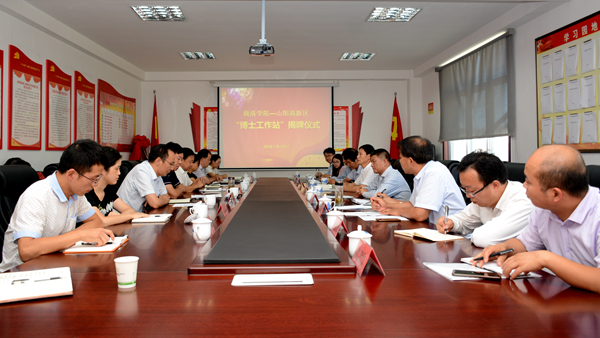 范新会、景小青共同为“博士工作站”揭牌。刘宝盈对bat365与山阳高新区建立博士工作站做了详细安排,冀博做总结讲话,崔新成致欢迎词,bat365教师陈垚博士做了表态发言。