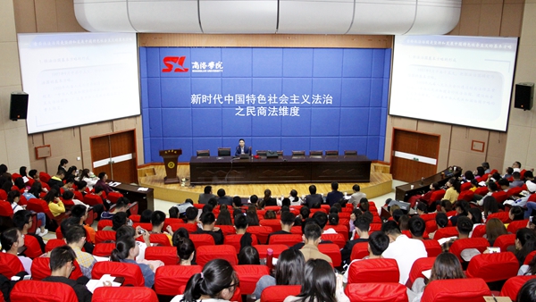 讲座中,郭升选教授从全面依法治国是坚持发展中国特色社会主义的基本方略、新时代中国特色社会主义法治体系、新时代中国特色社会主义法治体系之民法、新时代中国特色社会主义法治体系之商法等几个方面进行阐释,并以西安奔驰车主哭诉维权等现实中的具体案例进行分析,引起同学们极大兴趣,现场气氛热烈活跃。同学们纷纷表示从中学到了许多实用性的知识,获益匪浅。