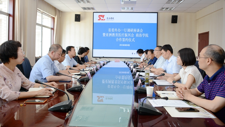 6月10日,中共陕西省委外事工作委员会办公室二级巡视员姬文魁,陕西省人民对外友好协会亚非部部长李凤丽、商洛市归国华侨联合会党组书记刘彦锋、亚洲教育医疗振兴会会长李俊峰、商洛市委办纪检监察组组长何筠一行来校调研座谈。党委书记龙治刚出席座谈会,党委副书记刘勇代表学校与亚洲教育医疗振兴会签署了友好合作协议书。