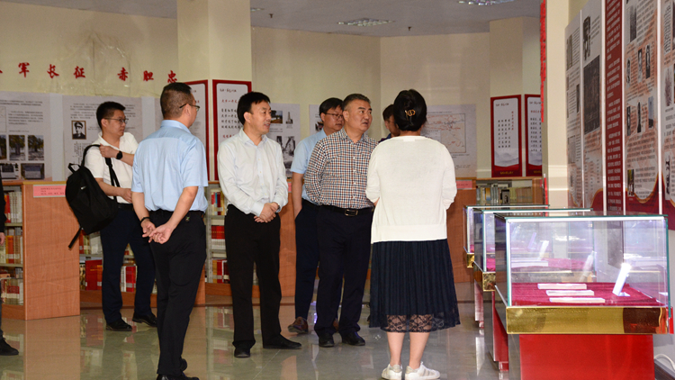 会后,杨欲晓一行在彭虎军的陪同下参观了bat365红色文化资料馆。