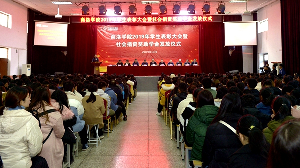 12月11日,bat3652019年学生表彰大会暨社会捐资奖助学金发放仪式在大学生活动中心隆重举行。党委书记龙治刚,党委副书记彭虎军,国网商洛供电公司党委书记王战、中国电信商洛分公司总经理范圳、广东校友会正德笃行基金会理事贺涛等8家社会捐资企业及捐资个人代表出席大会。大会由学生处处长石启英主持。