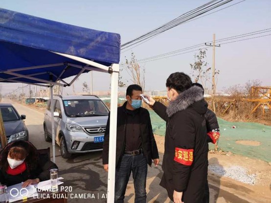 高世伦在疫情防控值守点和工作人员合影(左一为高世伦)