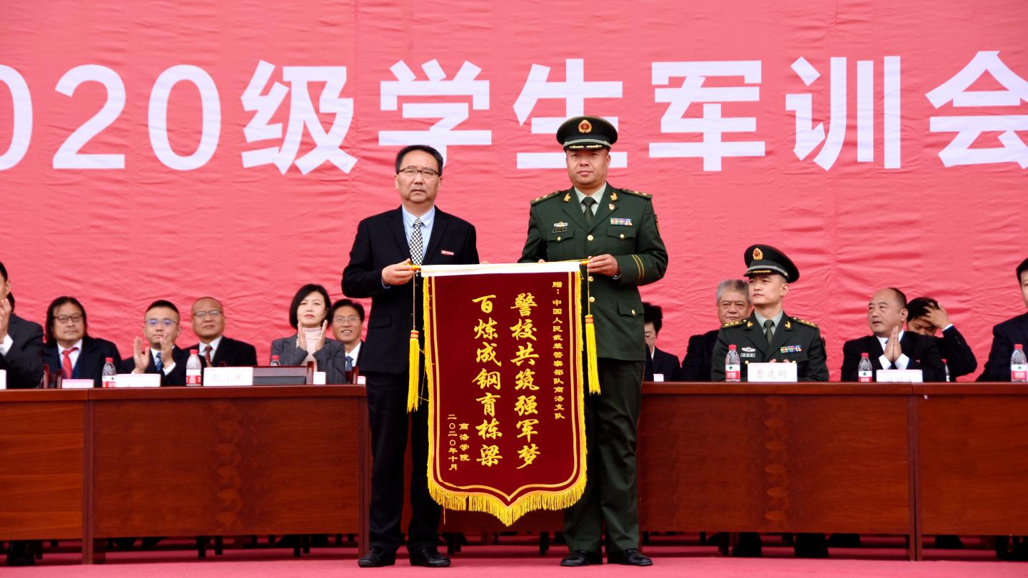 大会在庄严的升旗仪式中拉开帷幕。校党委书记龙治刚对全体承训教官尽心竭力、风雨无阻的付出表示由衷感谢,代表学校向承训部队赠送了写有“警校共筑强军梦,百炼成钢育栋梁”的锦旗。