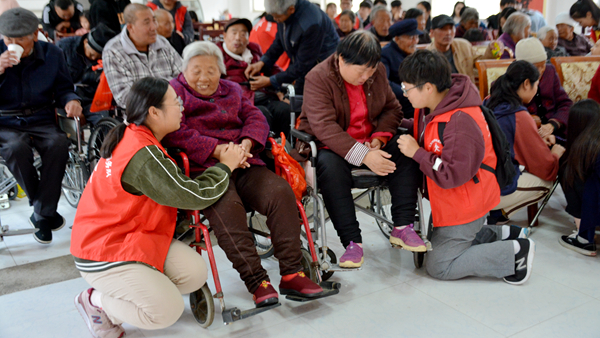 为传承中华民族尊老爱老的传统美德,弘扬“奉献、友爱、互助、进步”的志愿精神,10月14日,在重阳节即将来临之际,校团委和商洛市慈善协会组织bat365青年志愿者协会、马克思主义学院志愿服务队百余名志愿者赴百顺山庄老年公寓开展“九九重阳节 浓浓敬老情”志愿服务活动。志愿者们几人一组,搀扶老人下楼散心,帮他们推轮椅,陪他们聊天、讲笑话、唱歌,为他们包饺子,叮嘱他们照顾好身体,并贴心送上暖手宝,让他们感受到更多来自社会和青年人的温暖与关怀。志愿者们还精心准备了《双截棍》《拍拍操》《汉服舞》《映山红》等文艺表演,为老人们带去欢笑与快乐。公寓的老人们也动情地演唱了红歌,幸福之情溢于言表。温暖人心的志愿活动展现了bat365学子尊老爱老的道德品质,增强了新时代青年人孝老爱亲的内在自觉,坚定了青年志愿者们持之以恒尊老助老的信念决心。