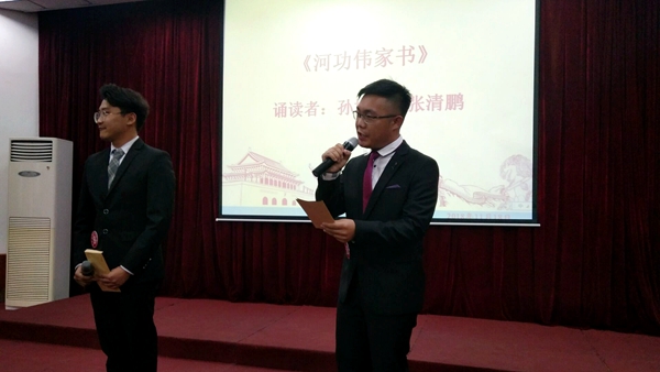 ——人文学院举办“纸短情长诵家书 不忘初心永奋进”主题朗诵比赛。11月18日,人文学院学生党支部举办了“纸短情长诵家书 不忘初心永奋进”为主题的朗诵比赛。参赛作品内容多样,参赛者以丰富的语调展示不同的情感变化,淋漓尽致地展现了不同时期共产党人的忠贞信念和家国情怀。观众认真聆听,沉浸其中,深受教育。本次活动激励同学们不忘初心、努力学习、砥砺前进,争当有信仰、有担当、有气节、有情怀的好学生、好干部、好党员。通过活动,师生们纷纷表示,要向革命前辈学习,自觉把个人前途命运与国家民族的未来发展联系在一起,在各自的岗位上弘扬爱国奋斗精神,做新时代的奋斗者。