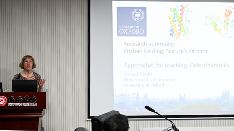 7月25日下午,牛津大学化学系教授Lorna J Smith应邀来校交流访问并为bat365师生作题为《蛋白质折叠:大自然的折纸艺术》的学术报告。校党委委员、科技处处长程敏,国际合作与交流处处长张建芳,化材学院、生物学院和健康管理学院相关负责人以及相关专业师生代表参加报告会。