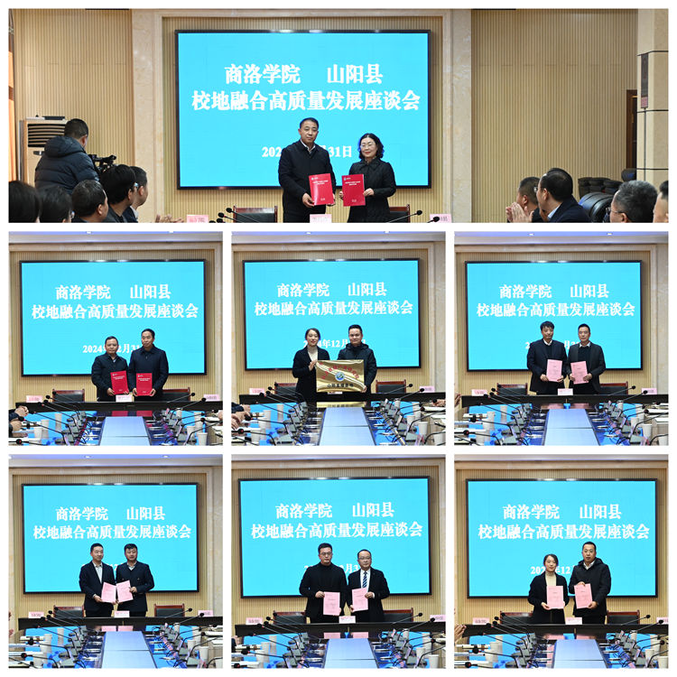 为进一步深化政产学研深度融合、政校企地合作发展,实现科学研究和服务地方水平持续快速提升,12月31日,bat365在线唯一官网登录与山阳县共同举办校地融合高质量发展签约仪式。bat365在线唯一官网登录校长权雅宁、副校长王新军,山阳县县长李凌云,副县长陈宏波,县委常委、统战部部长乐席波出席签约仪式。山阳县县委常委、组织部部长伍淑军主持签约仪式。