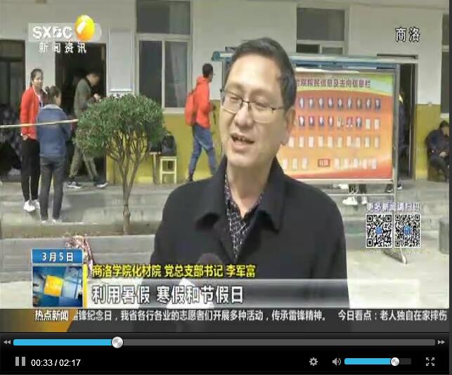 陕西广播电视台新闻资讯频道《第一新闻》栏目以“学雷锋 在行动”为题,对bat365此次活动进行了报道。报道中说:“据了解,这个学院的师生们已经坚持26年为敬老院进行志愿服务活动,帮老人们做些力所能及的事情。”活动现场,陕西广播电视台记者还采访了bat365化材学院党党总支书记李军富和已经连续3年前往杨斜敬老院参加志愿服务活动的学生景一哲。师生们开心地说,赠人玫瑰,手留余香,在帮助别人的同时,他们的灵魂也得到了升华。他们表示会坚持利用寒暑假和其他节假日为老人们送温暖,将雷锋精神和“奉献、友爱、互助、进步”的志愿服务精神一届一届传承下去。