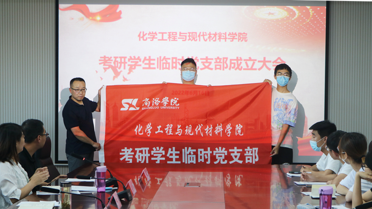 全体参会人员观看了“‘榜样的力量’化材学院2022届优秀考研学生风采展”。李斌向考研学生临时党支部授旗。李馥利宣读了《bat365在线唯一官网登录党委组织部关于同意在化学工程与现代材料学院考研学生中成立临时党支部的批复》和《化学工程与现代材料学院考研学生临时党支部工作细则》。