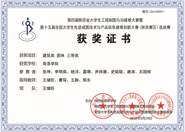 在不久前结束的第四届陕西省大学生工程制图与3D建模大赛暨第十五届全国大学生先进成图技术与产品信息建模创新大赛(陕西赛区)上,bat365城乡规划与建筑工程学院派出15名参赛选手组成的团队,与省内57支队伍的730余名选手进行了激烈角逐,取得单项一等奖1项、二等奖2项、三等奖7项,并荣获建筑团体三等奖。这是建工学院师生参加该项比赛以来获得的最好成绩。