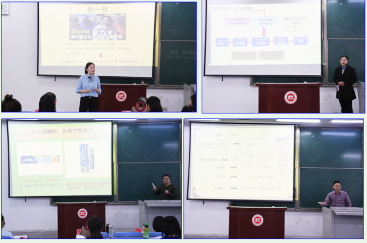 八位参赛教师按照抽签顺序逐一进行现场教学展示。经过激烈角逐,冯丽君、刘玉婷获“人文学院教学标兵”称号,王欣欣获“人文学院教学能手”称号,钟思远获“人文学院教学骨干”称号,其余四位教师荣获教学优秀奖。