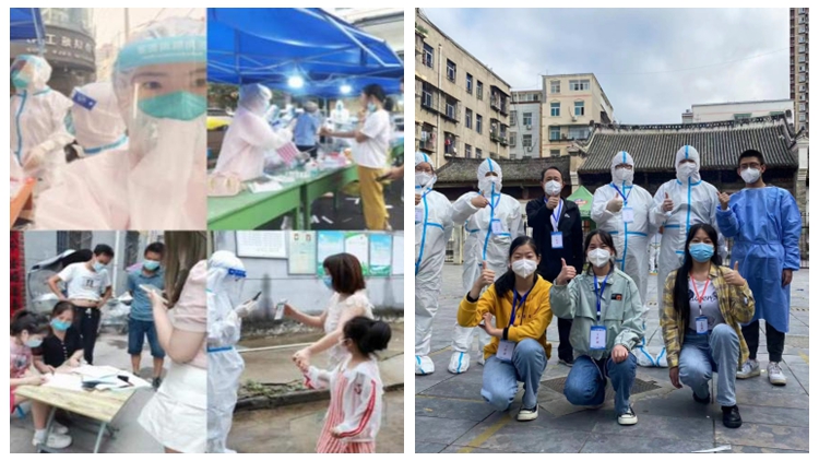 面对暑期各地疫情突发状况,人文学院学子第一时间响应当地政府号召,变身“白墩墩”“红融融”,协助医护人员设置检测场地、维持采样秩序、进行扫码登记、发放核酸贴纸,确保核酸检测工作有序进行,为当地疫情防控工作贡献青春力量,展现青年责任担当。