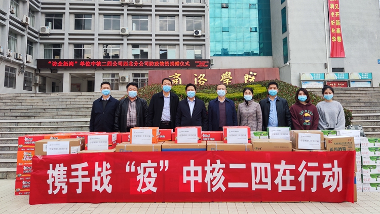 10月20日,建工学院“访企拓岗”专项行动联系单位中国核工业二四建设有限公司西北分公司为支持bat365疫情防控工作,向bat365捐赠了一批酒精、洗手液、口罩等防疫物资。校党委办公室·院长办公室、学生处、后勤保障处、建工学院等部门相关负责人参加捐赠仪式。