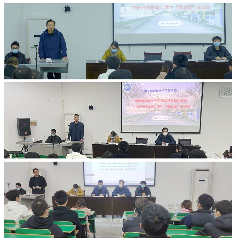 为拓展师生有效沟通的渠道,引导青年学生规划好大学生活,帮助学生解决学习生活中的困惑和问题,11月28日,电信学院党政领导与2022级电气工程及其自动化专业(中外合作办学)学生以线上线下相结合的方式开展面对面交流活动。电信学院院长袁训峰,党委副书记·副院长陈垚,副院长李亚文出席活动。电气工程系系主任张商州、学工办主任陈倩和2022级电气专业(中外合作办学)全体学生参加了活动。会议由党委书记赵永平主持。