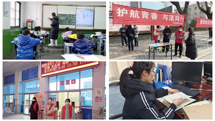 来自陕西商洛的毛蕊同学作为一名师范生,在家乡山阳县户垣镇桃园小学开始了为期15天的支教活动;来自陕西延安的韩雨馨参加了共青团洛川县委开展的“护航青春·与法同行”法治宣传活动;来自山东德州的吴春香参与了家乡镇政府组织的志愿服务工作,前往临邑镇朱家胡同村帮助村民售卖滞销的芹菜,并教授村民如何进行网上销售;来自山西省运城市河津市的周子雯参加了家乡政府组织的“学思践悟二十大踔厉奋发新征程”实践活动,对河津市退休党员干部档案进行数字化管理,将他们的档案进行编页扫描入库;来自陕西咸阳的姚含玉在三原县政府部门自然资源局从事文秘工作,并参与了汽车站志愿服务活动,帮助旅客搬运行李、指引老人小孩自主取票等。