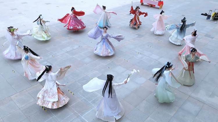 清商汉服学社在玉兰广场举办的“十二花神齐探春,共赴一场花朝宴”活动以“入画江南”走秀拉开帷幕,并相继进行敬花神、寻找12花神NPC集章赢奖、画花钿、簪花赐福和解读十二花神等活动环节。社团成员身着不同形制的汉服,细心温柔地指导每一位前来免费体验画花钿、珍珠面妆、团扇等项目的同学。活动现场其乐融融,参与的同学借此活动充分感受民间传统文化的乐趣,欣赏传统服饰之美。