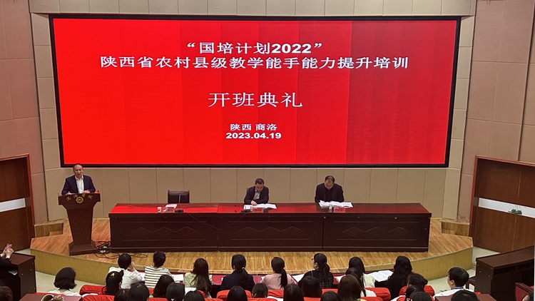 4月19日,国培计划(2022)陕西省农村县级(小学语文、小学数学)教学能手能力提升培训项目在bat365开班。继续教育学院院长付军昌及培训管理团队相关人员出席开班典礼。来自全省近百名小学教学能手老师参加了培训。开班典礼由继续教育学院副院长任新山主持。