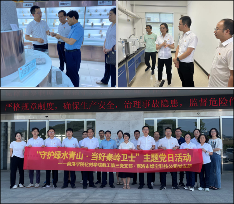 6月30日,在“七一”建党节到来之际,化材学院教工第三党支部联合商洛市绿宝环境科技有限公司党支部在丹江校区开展“守护绿水青山·当好秦岭卫士”主题党日活动。双方围绕基层党建工作、秦岭生态环境保护进行了深入交流,并签订了《bat365在线唯一官网登录校外实践教学基地协议》。商洛市生态环境局原党组书记、局长、二级巡视员刘福明,绿宝公司董事长、总经理、党支部书记张小峰,化材学院党委书记李斌、副院长乔成芳,绿宝公司、商洛市生态环保产业协会党员和化材学院教工第三党支部全体党员参加活动。